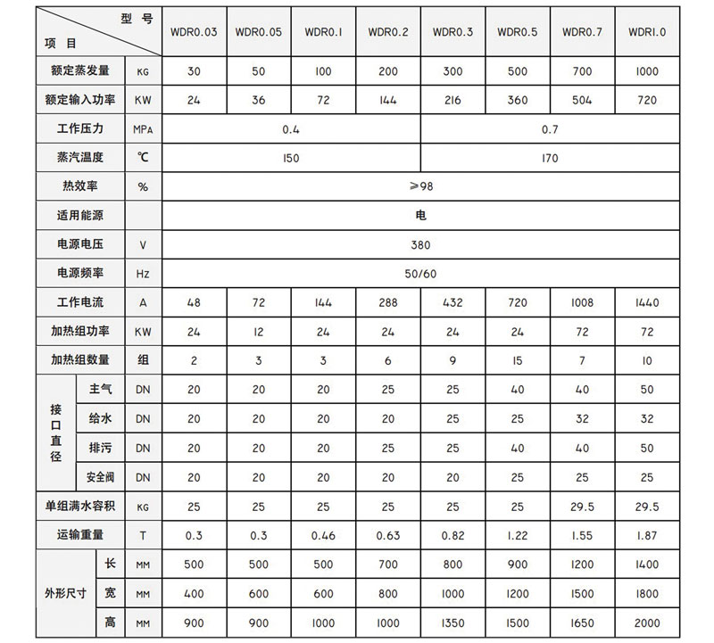 WDR電蒸汽發(fā)生器采用低表面熱負(fù)荷電熱元件,每一元件均進(jìn)行水壓及耐電壓試驗;接上電源及水源后即可工作。安靜、清潔,符合環(huán)保的要求,不會向大氣排放NOx(氮氧化合物)。電蒸汽發(fā)生器操作簡便,一鍵啟動、停止,3分鐘出蒸汽,運行負(fù)荷調(diào)節(jié)范圍大,維護(hù)簡便。每組電熱元件采用集中束型法蘭連接,獨立設(shè)置,機械強度高,安全可靠,更換方便,使用壽命長等特點。